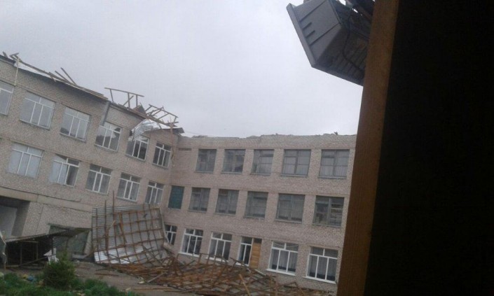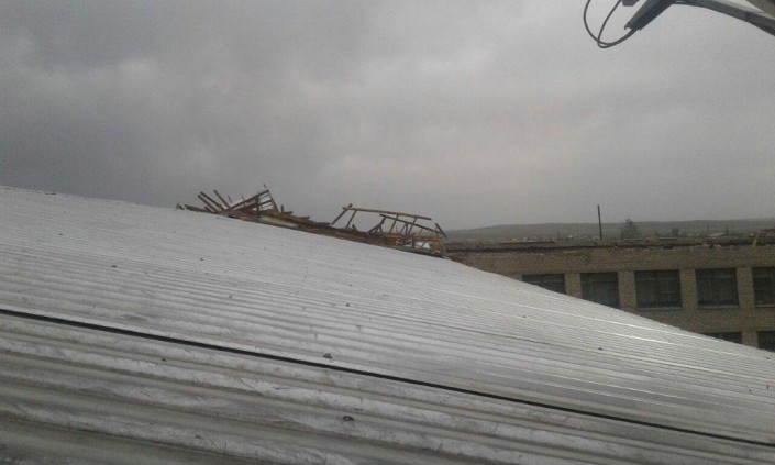В Аягозе пострадало здание городской многопрофильной школы-гимназии - площадь срыва кровли составила 450 квадратных метров. Также сильный ветер сорвал крышу школы-гимназии № 10.