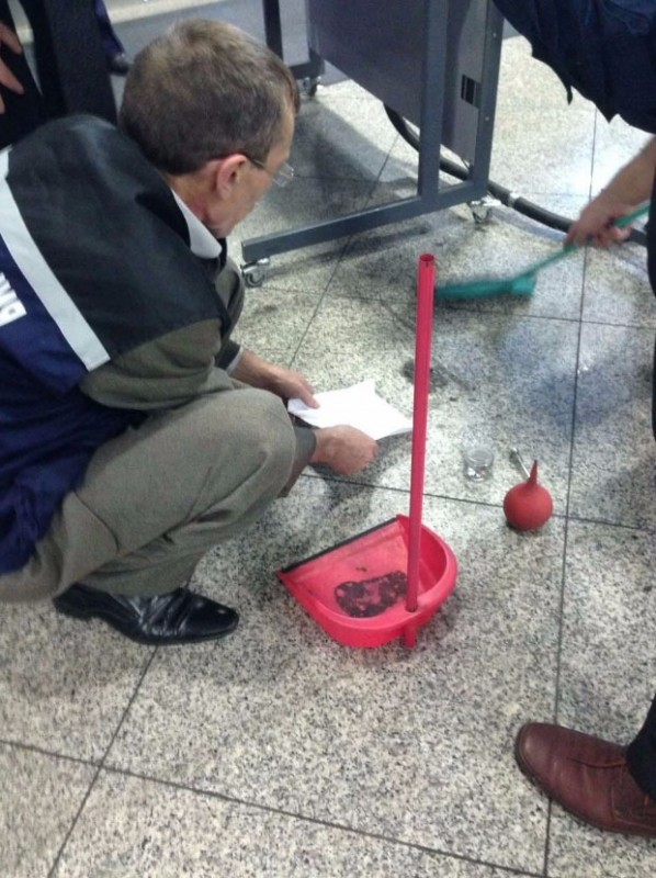 На фотографиях с места, где пассажир рейса Алматы - Тбилиси разлил ртуть, запечатлен процесс уборки помещения уже после того, как ртуть была удалена специалистами. Об этом в интервью Tengrinews.kz сообщил химик-аналитик "Службы спасения города Алматы" Сергей Бургарт. По его словам, снимки сделали пассажиры, которых пустили в аэропорт уже после того, как спасатели убрали ртуть и уровень концентрации опасных веществ в воздухе упал до безопасного.