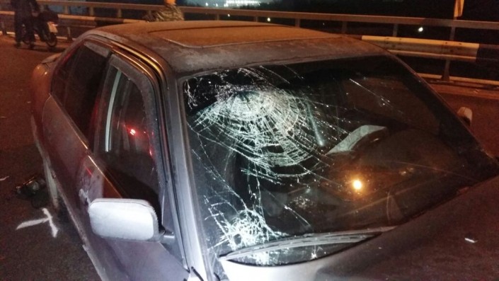 На развязке по проспекту Суюнбая на юг, не доезжая улицы Шолохова, автомобиль марки BMW совершил наезд на препятствие (металлическое ограждение моста). После этого машину откинуло и она встала поперек дороги.