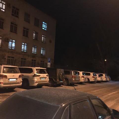 Машины из свадебного кортежа у здания отдела полиции Семея. Фото ОО "ОСА"