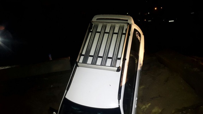 Subaru провалился в вырытую яму в Алматы