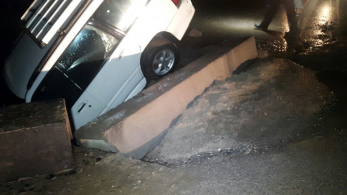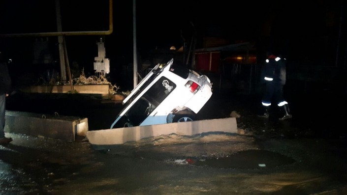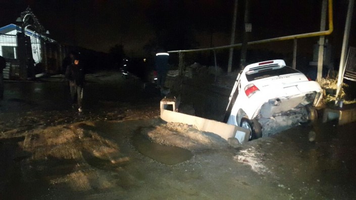 В Алматы автомобиль Subaru Forester провалился в яму, вырытую коммунальными службами города, передает корреспондент программы "Территория происшествий" на телеканале СТВ.