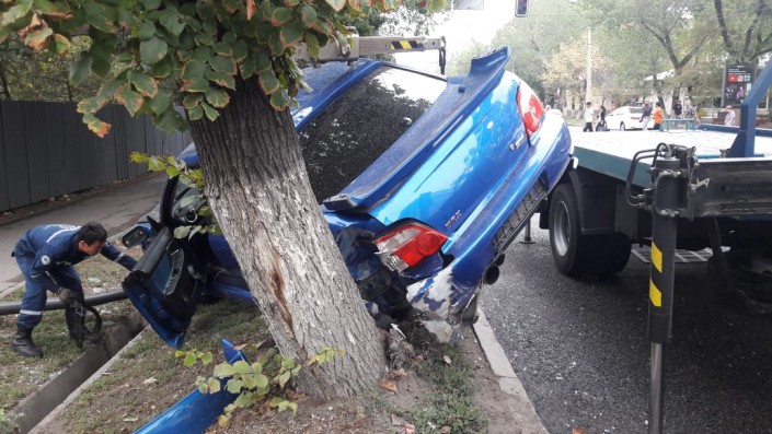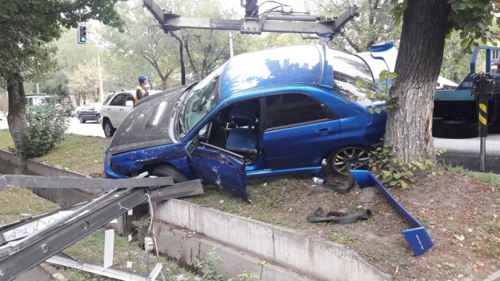 ДТП произошло по улице Жандосова на пересечении с улицей Айманова. Со слов водителя, он следовал в западном направлении по Жандосова. По его словам, в последний момент автомобиль перед ним включил левый поворот, уходя от столкновения, водитель Subaru ушел правее, начал притормаживать. За счет погодных явлений, мокрого асфальта, водитель не справился с управлением и сбил рекламный билборд.