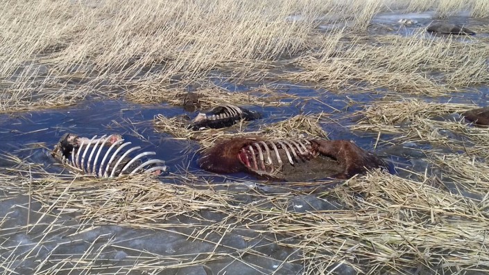 Табун лошадей нашли вмерзшим в озеро в Павлодарской области