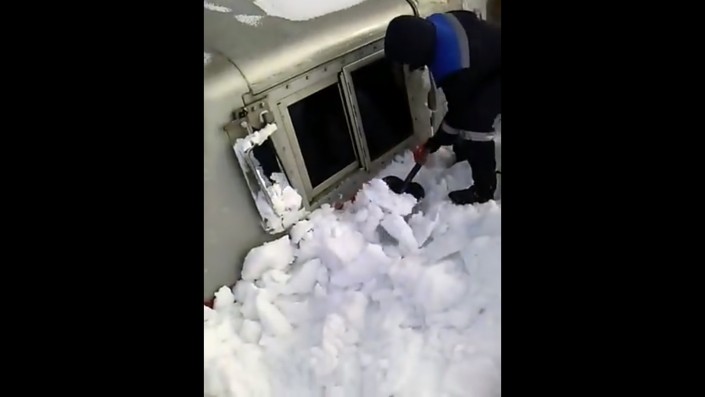 "Тепловоз застрял после бурана. Приехали откапывать. Вон какая глубина", - слышен голос за кадром.