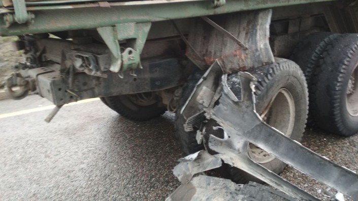 Toyota врезалась в стоявший на обочине КамАЗ в Алматы Фото ©"Территория происшествий" на телеканале СТВ