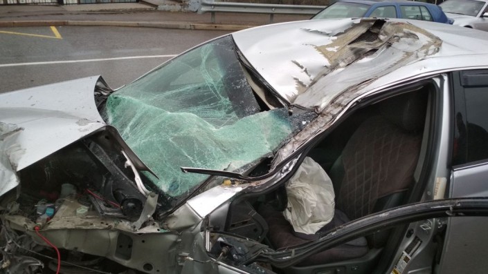 Toyota врезалась в стоявший на обочине КамАЗ в Алматы