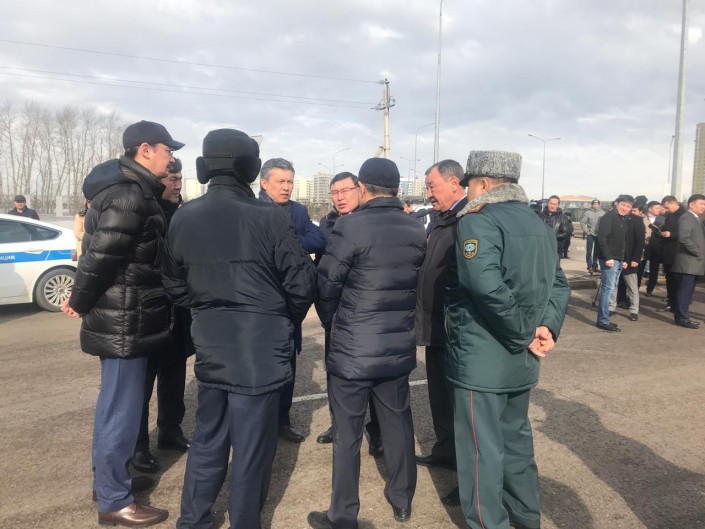 Аким Нур-Султана Бахыт Султанов на месте происшествия.