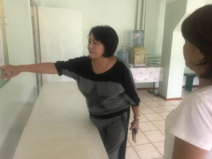 "Школа рассчитана на 624 учащихся. Поэтому мы можем легко принимать жителей. Сейчас человек, который снимает в аренду кухню, уехал за продуктами. С приездом населения мы начнем готовить еду. Мы готовы принять всех, будь то 100 человек или 200. И постельные принадлежности тоже приносят. Сейчас мы готовим спортивный зал на 200 человек", - рассказывает директор школы Гульнар Сандыкбаева.