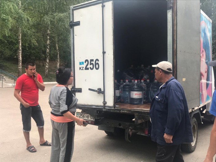 "Так как школа номер 158 является главным эвакуационным пунктом, мы проверили это место. Для того, чтобы население было готово к поступлению, завезено 20 бутылок воды. Дополнительно еще будут завозиться. Туалеты тоже чистые. Работает медицинский пункт, готовы врачи и медработники", - говорит главный специалист Управления контроля качества и безопасности товаров Ауэзовского района Жамал Жусупова.