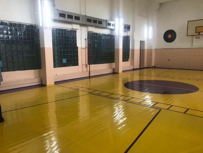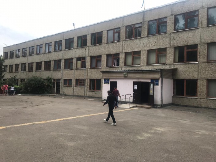 Школа расположена на пересечении улиц Джандосова и Яссауи. Сейчас здесь пусто, но все активно готовятся к встрече эвакуированных: освобождают помещения для ночлега, подвозят питьевую воду и продукты.