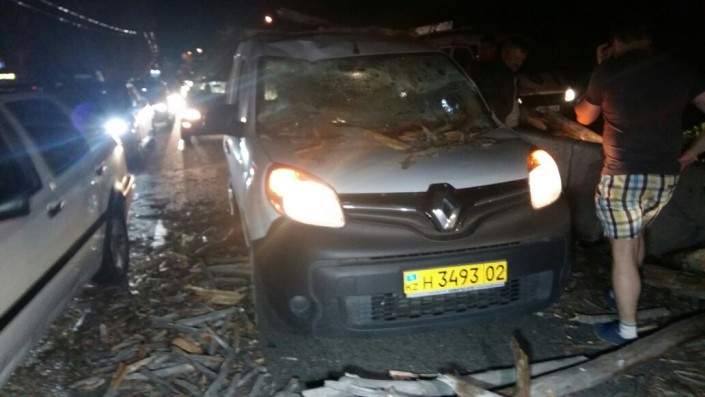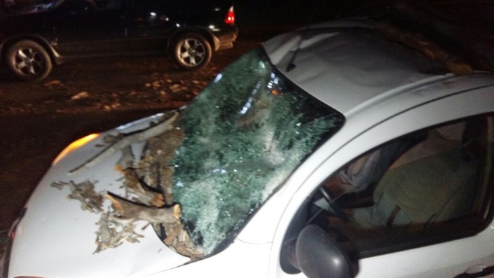 В Алматы упавшее от сильного ветра дерево упало на проезжую часть, повредило легковой автомобиль марки Renault и перекрыло движение. В результате падения тополя никто не пострадал, однако на дороге образовалась внушительная пробка. Об этом сообщает корреспондент программы "Территория происшествий" на телеканале СТВ.