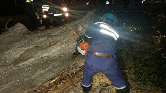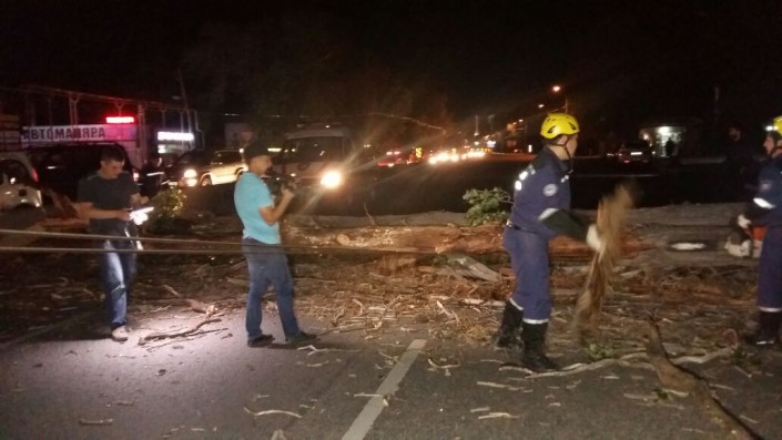 Упавший от ветра тополь перекрыл движение в Алматы