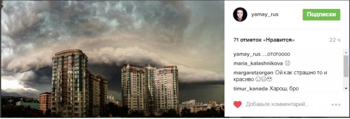 Напомним, 18 июля около 18.00 Алматы накрыла тьма и начался ливень, который сопровождался сильным ветром. Алматинцы начали делиться в соцсетях фотографиями непогоды. От сильного ветра падали деревья. В районе Каменки выпал град размером с грецкий орех. Также в южной столице наблюдались перебои в подаче электричества. Позже сообщалось, что в Алматы во время урагана 16 деревьев упали на авто.