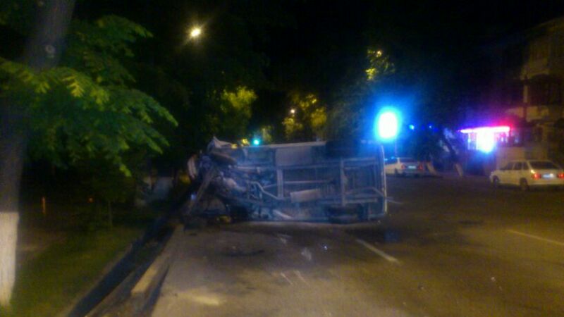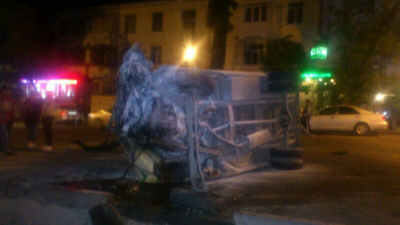 Ночью 14 мая в центре Алматы произошло ДТП с участием инкассаторской машины. Как передает корреспондент программы "Территория происшествий" на телеканале СТВ, автомобиль Honda, преследуемый полицейскими, на большой скорости врезался в инкассаторский фургон, в результате чего последний опрокинулся, а японская иномарка угодила в дерево, попутно сбив дорожный знак.