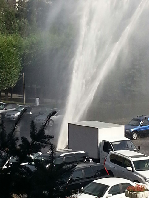 В Алматы из-под асфальта бьет 20-метровый фонтан