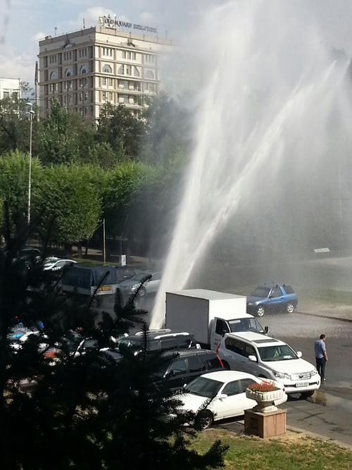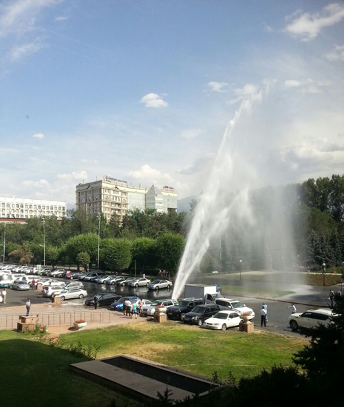 В Алматы из-под асфальта бьет 20-метровый фонтан ©Tengrinews.kz