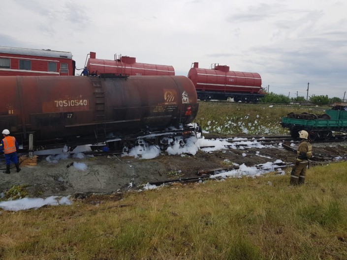 Как сообщили в ДЧС Костанайской области, в результате схода произошла разгерметизация цистерны и разлилось около 10 тонн топлива на 20 квадратных метрах. Всего в цистерне было 54 тонны дизтоплива.