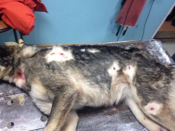 Прооперированную собаку защитники животных доставили в приют, где она находится в данный момент. Работники приюта даже придумали ей кличку - Веста. Животное пока лежит, но уже приподнимается на передних лапах. Из-за ранения горла есть еще не может, но пьет бульон.