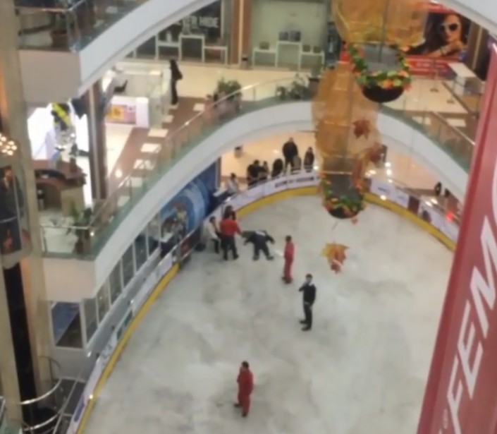 Инцидент произошел 29 октября. Мужчина спрыгнул с третьего этажа здания. По словам очевидцев, неизвестный перепрыгнул через ограждение и упал на каток.