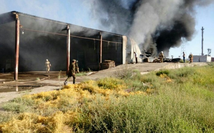 В Туркестане горел склад с ватой и салфетками Фото предоставлено КЧС МВД РК