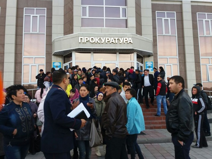 В Караганде сотни вкладчиков предприятия "Optovka" собрались возле прокуратуры Октябрьского района и потребовали освободить руководителя этого предприятия, которая должна вернуть им деньги, передает корреспондент Tengrinews.kz.