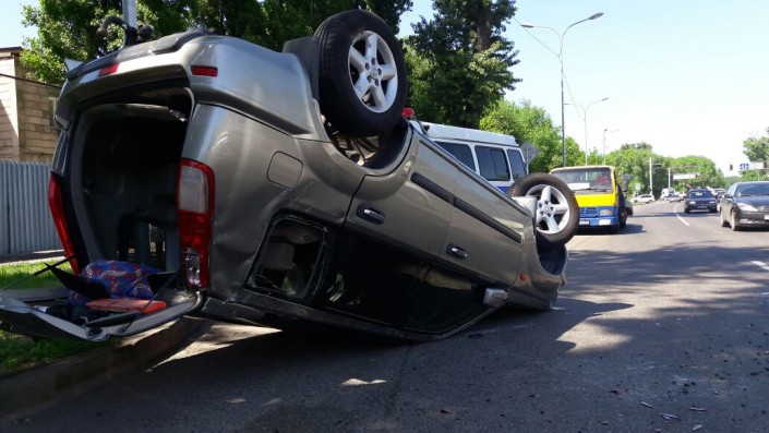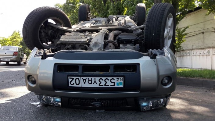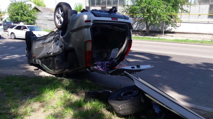 Внедорожник опрокинулся после ДТП в Алматы