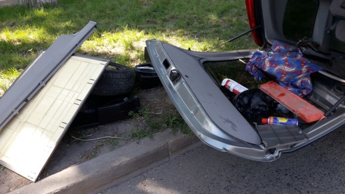 В результате Audi врезалась в бок Nissan, после чего Nissan опрокинулся на крышу.