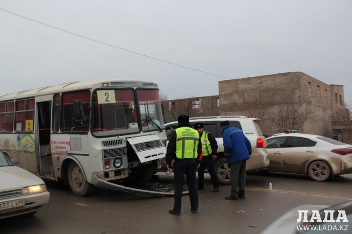 В Актау произошло ДТП с участием внедорожника и пассажирского автобуса, сообщает "Лада".