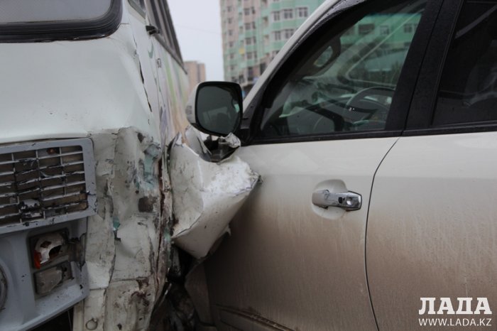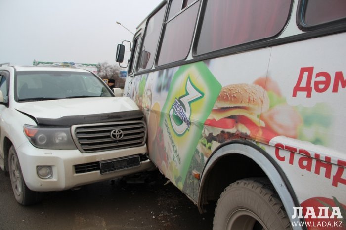 Внедорожник протаранил пассажирский автобус в Актау Фото с сайта lada.kz
