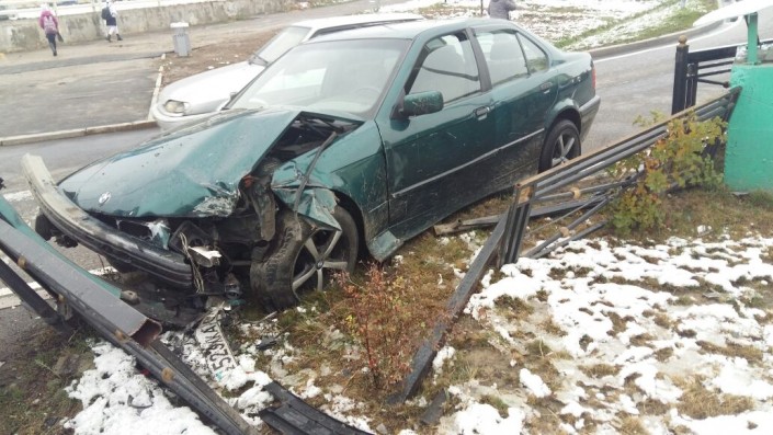 В Алматы после выпавшего первого снега произошло крупное ДТП. Водитель BMW не вписался в поворот и снес ограждение, передает корреспондент программы "Территория происшествий" на телеканале СТВ.