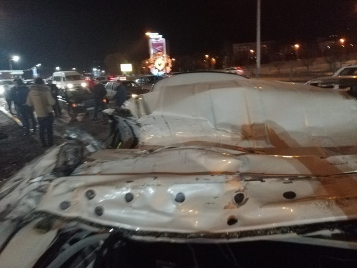 В ночь с 7 на 8 января в Алматы на развязке на Аль-Фараби - Жарокова произошло крупное ДТП, сообщает корреспондент программы "Территория происшествий" на канале "СТВ".