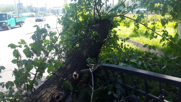 Инцидент произошел на проспекте Абая, не доезжая до улицы Манаса. Водитель Peugeot двигался в западном направлении по Абая, когда на авто упало дерево, повредив лобовое стекло и капот. Водитель автомобиля был госпитализирован.