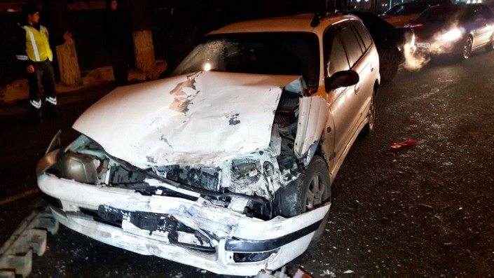 Авария произошла на пересечении проспекта Сейфуллина и улицы Котельникова. Со слов очевидцев, автомобили остановились перед пешеходным переходом, чтобы пропустить людей. В это время в них на полном ходу влетела Toyota Caldina.