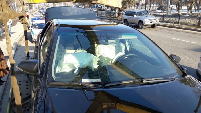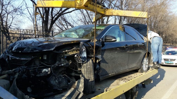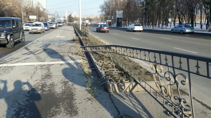 Водитель Toyota снес ограждение на проспекте Аль-Фараби Фото корреспондента программы "Территория происшествий" на телеканале СТВ.