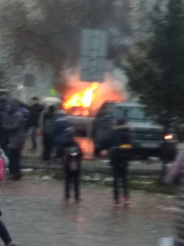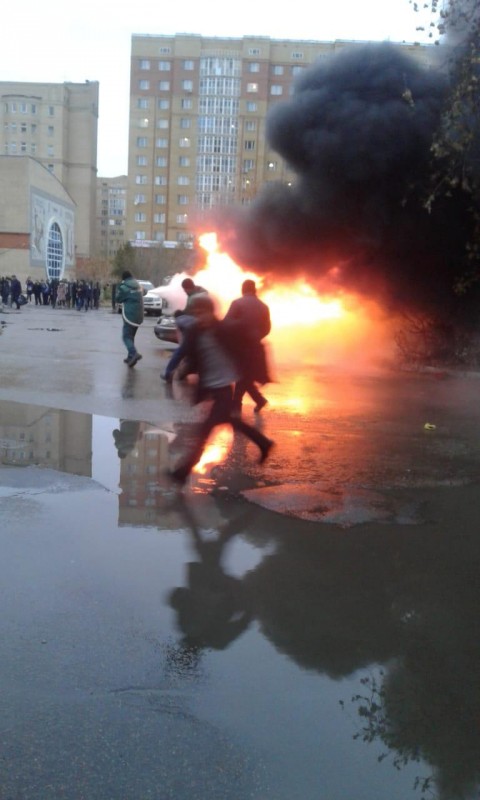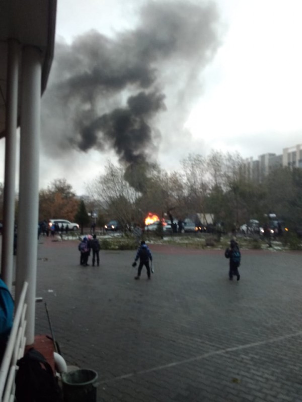 Возле школы в Астане загорелся автомобиль фото очевидца