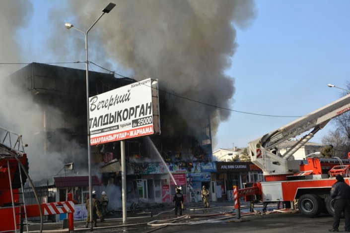 "Сегодня, 8 января 2018 года, в 12.55 на пульт дежурной службы ДЧС Алматинской области поступил вызов по факту загорания фасадной части, первого, второго и третьего этажей торгового дома "Карагаш" в Талдыкоргане. Предварительная площадь пожара - более 100 квадратных метров. Жертв и пострадавших нет. Проведена эвакуация более 300 человек", - сообщил официальный представитель КЧС МВД РК Руслан Иманкулов.
