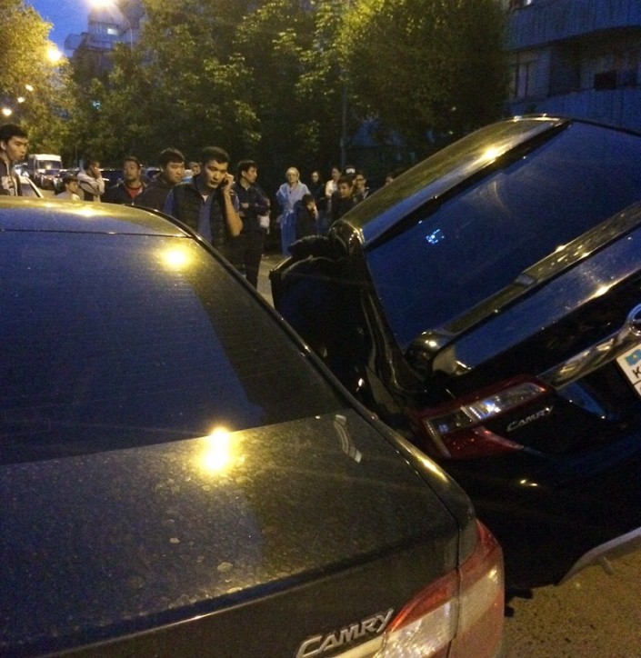 В Алматы произошло второе за неделю необычное ДТП. Вечером 3 мая в микрорайоне "Кулагер" Toyota Camry частично залетела на Toyota Corolla. Снимки курьезной аварии прислал порталу Motor.kz один из очевидцев. Он правда не уточнил, при каких обстоятельствах случилось ДТП. По всей вероятности, всему причиной банальное нарушение правил дорожного движения.