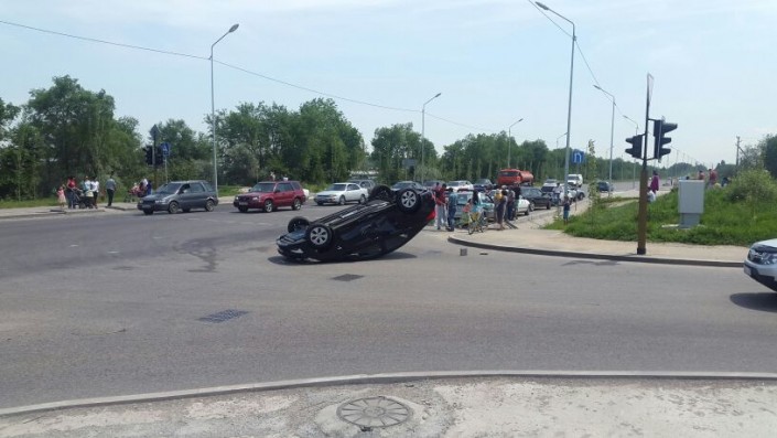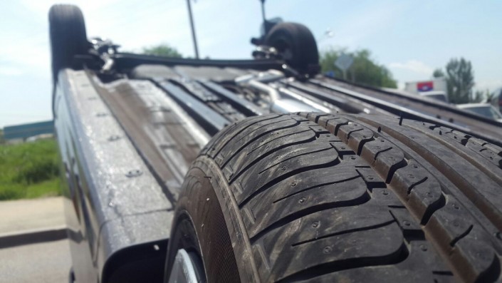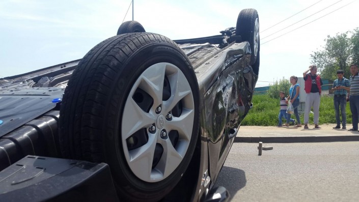 Автомобиль Hyundai перевернулся в результате ДТП в Алматы, передает корреспондент программы "Территория происшествий" на телеканале СТВ.