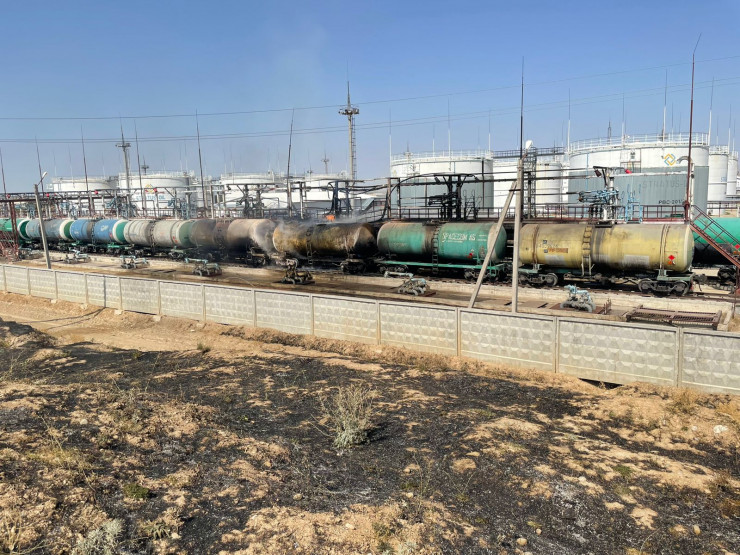 "По прибытии пожарных подразделений установлено, что при заправке цистерн на нефтебазе "КазТрансОйл" произошло загорание бензина в одной цистерне, объем бензина предварительно 3,5 тонны (количество - 20 цистерн в составе)", - говорится в сообщении.