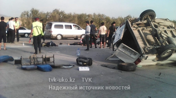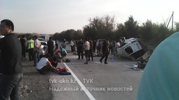 Крупная авария произошла в Южно-Казахстанской области близ поселка Казыгурт вечером в понедельник, 19 сентября. На Ташкентской трассе лоб в лоб столкнулись пассажирский микроавтобус Ford и праворульная Toyota. Пятеро человек (четверо мужчин и одна женщина) погибли на месте, несколько человек пострадали, обе машины превратились в груды искореженного металла, передает телеканал TVK.