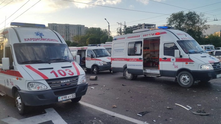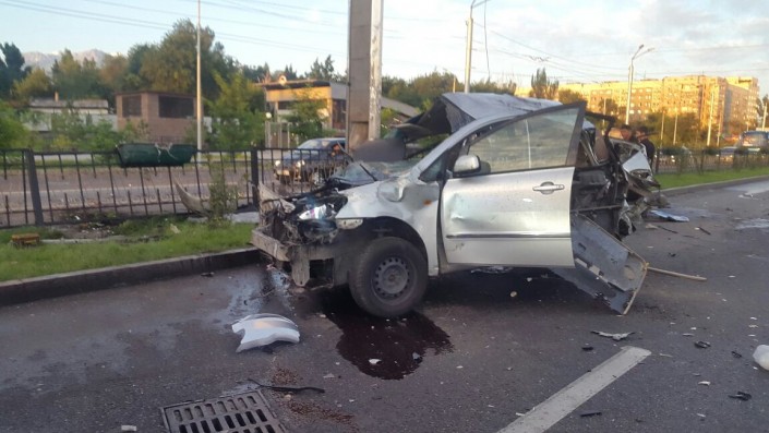 Тем временем Toyota Ipsum с кыргызскими номерами двигалась в западном направлении по проспекту Абая. По предварительной информации, она также проехала на мигающий зеленый свет светофора.