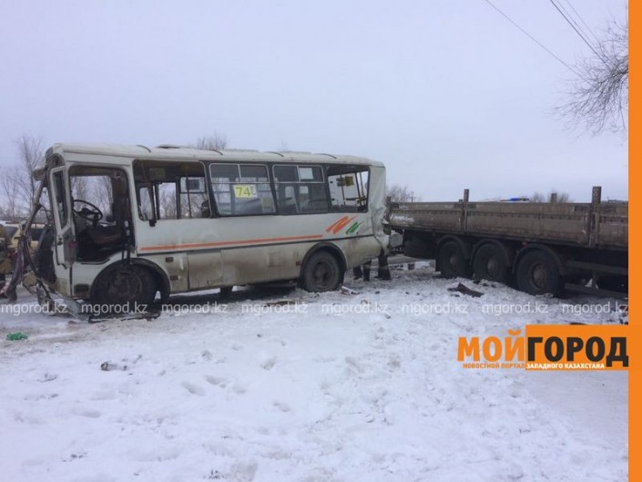 Авария произошла около 16.00 на Желаевской трассе, в районе АЗС "Питстоп". По словам начальника МПС Уральска Муслима Жардемова, автобус ехал из поселка Трекино в город, а фура шла в противоположную сторону. Другие обстоятельства ДТП не сообщаются.