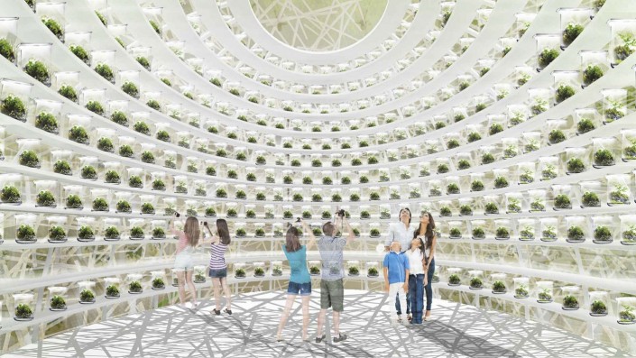 Пятый зал станет кульминационным в путешествии по сингапурскому павильону. Посетители окажутся в "Лаборатории для будущего" - пространстве, напоминающем оранжерею или гербарий. Это пространство, заполненное террариумами, аккуратно расположенными на массиве полок.