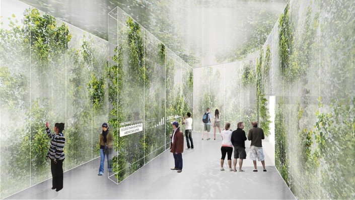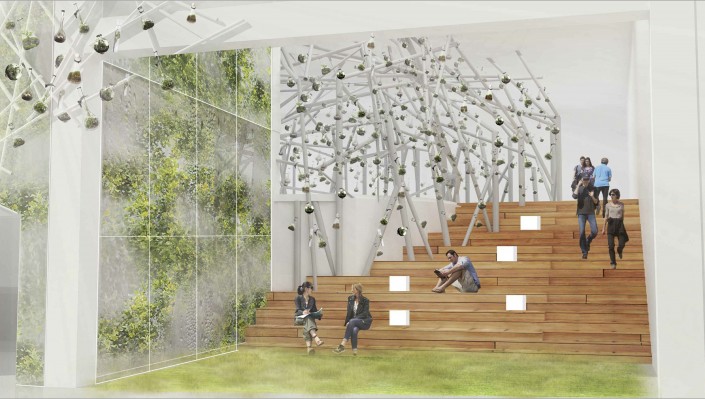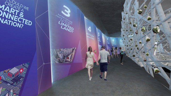Войдя в павильон, посетители почувствуют себя в тропических условиях Сингапура - небольшая жара в сочетании с затуманенными стенами, покрытыми растениями, перенесет посетителей в потусторонний "белый ящик", где они узнают о контексте Сингапура как страны, которой не хватает земли и природных ресурсов.
