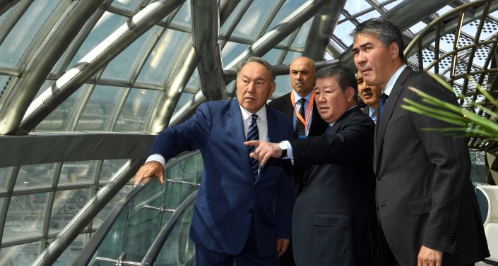 Нурсултан Назарбаев посетил Конгресс-центр выставочного комплекса, где осмотрел залы "Шанырак", "Аспан", VIP-террасы, Концертный зал. Конгресс-центр представляет собой многофункциональный культурно-развлекательный центр, включающий зрительный зал на 2192 посадочных места.