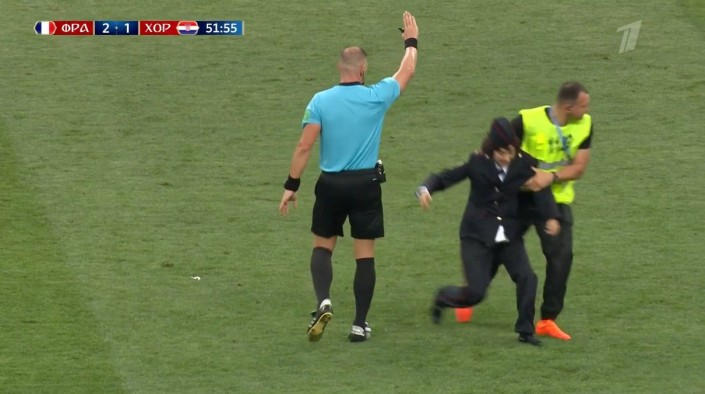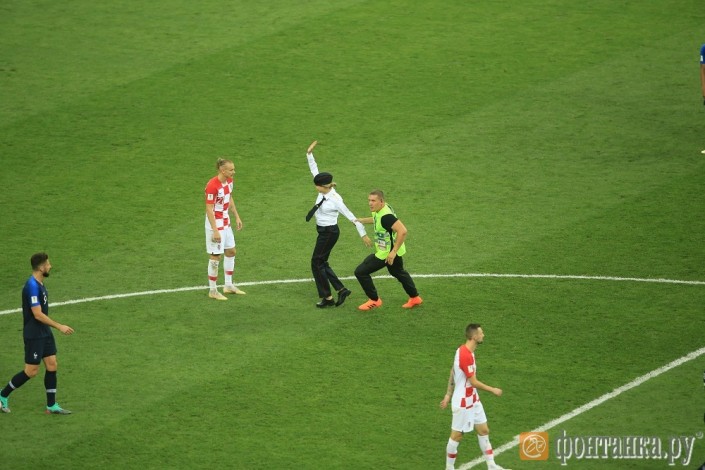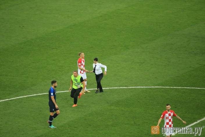 Инцидент произошел во втором тайме решающей игры. На 53-й минуте в ходе атаки сборной Хорватии на поле выбежали несколько болельщиков. Игра была прервана ненадолго и вновь возобновлена.