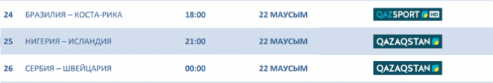 В 18.00 по времени Астаны в Санкт-Петербурге состоится матч группы E между сборными Бразилии и Коста-Рики. Эту встречу в прямом эфире покажет телеканал QazSport. Онлайн-трансляция.