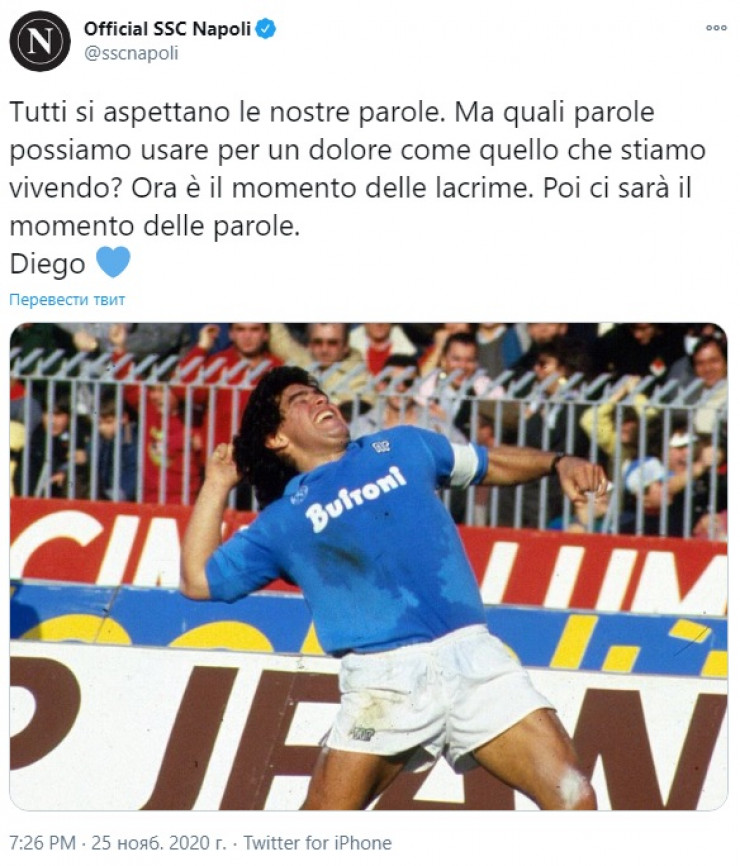 "Бәрі біздің сөзімізді күтіп отыр. Бірақ дәл қазір біздің жан ауруымызды қандай сөз сипаттай алады? Қазір жылайтын сәт. Сөз кейін айтыла жатар", - деп жазды "Наполидің" ресми өкілдері.