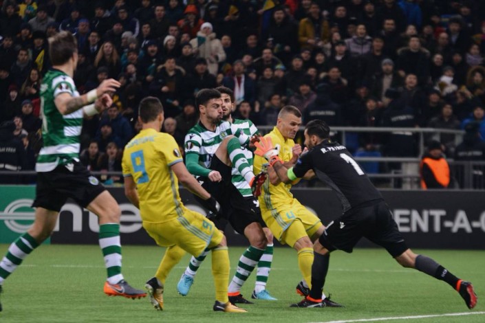 Футболисты "" проиграли португальскому "Спортингу" из Лиссабона в первом матче 1/16 финала Лиги Европы, передает корреспондент Vesti.kz.